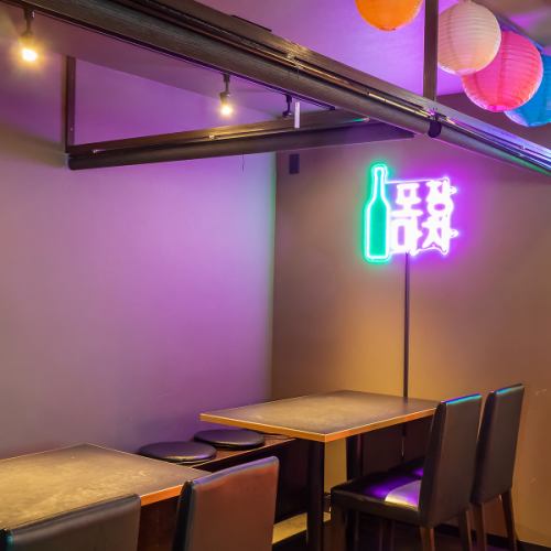 スタイリッシュなオシャレ空間★ネオン煌めく店内はSNS抜群!女子会やデート,誕生日シーンにもピッタリ★